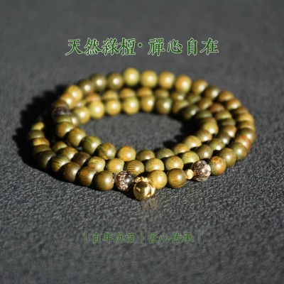 Tiny Water Healing Bracelet: 6mm Green Sandalwood Super Seven Black Crystal Stackable Calm