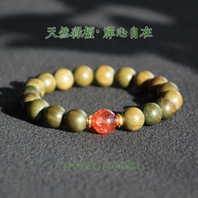 Fire Energy Men's Bracelet: 10mm Green Sandalwood Super Seven Red Crystal - Workplace