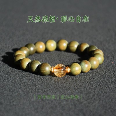 Delicate Protection Bracelet: 6mm Green Sandalwood Citrine - Feng Shui Gift